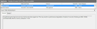 The next place to check was the Windows event logs. In the Application Log, I found the buffer pool entry by SQL Server (EventID 17890), and then proceeded to search backwards in time. A few minutes before SQL’s error, I noticed this entry.