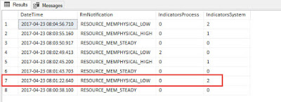 The next stop on the investigation trail is the sys.dm_os_ring_buffers DMV. This is a great tool to help determine if the memory pressure came from within SQL Server or from the Windows OS.