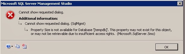 Today when I clicked Properties of tempdb in SSMS, I got the error message below: