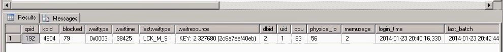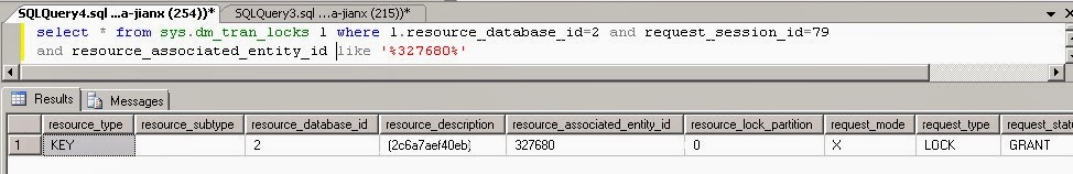 so the blocking session is 79, and wait resource is key 2:327680. I got the table and index name with the script below: