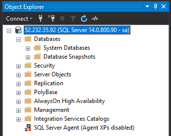 That IP can then be dropped into SSMS (along with the SA username and password set) and boom! A connection to SQL Server running in a Kubernetes pod that was created via a deployment from the dashboard: –