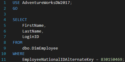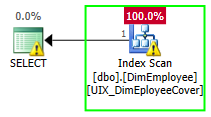 We have a very simple query that retrieves data from the dbo.DimEmployee table (from the AdventureWorksDW2017 database). We also have a covering index in place, so I would expect to see the Index Seek operation in the execution plan: