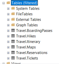 For example, if I want to see only tables that are in the Travel schema, all I have to do is create a filter: