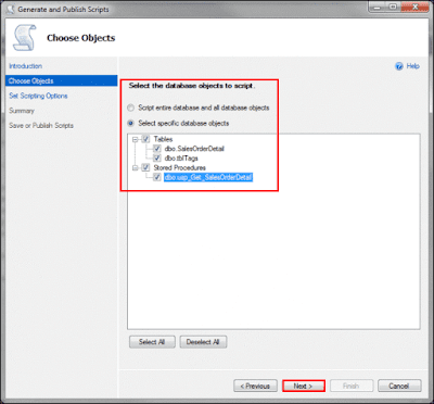 - Now, choose the database object that you need. Click on Next.