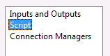 Now it’s time to add the code to get the drive information and send it to the output buffer. Click the Design Script… button and add the code below. The sample code is for the Win32_LogicalDisk query. If Win32_Volume is being used, change the column names to match that WMI query. Note that the User::DriveInfo variable has to be converted to a DataTable type. Here is the code in VB.Net for SSIS 2005.