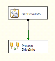 The contents of the DriveInfo variable need to be processed with a Data Flow Task. This will be accomplished with a Script Component used as a data source feeding an Oledb destination that will write the drive information to a table.