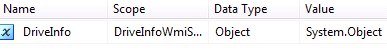 Destination should be set to a variable of type Object. The variable DriveInfo can be created from here or beforehand from the variables browser. Remember to watch the variable scoping. It should scoped at the package level.