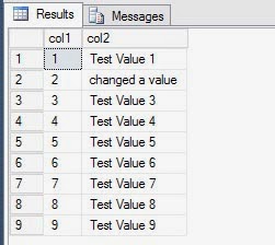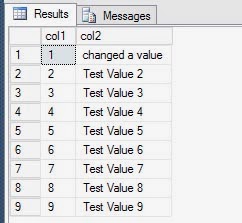 UPDATE dbo.Table1 SET col2 = 'changed a value' WHERE col1 = 1;
