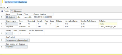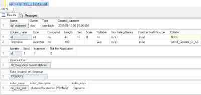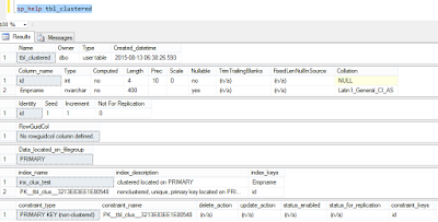 Let see the table details again to check is any clustered index is created on the primary key column when we defined the primary key in the table.