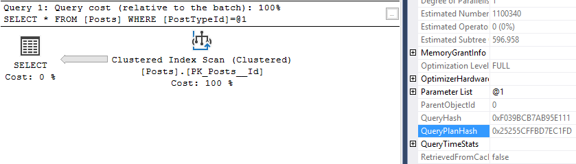 Okay, our first query plan hash is 0xC296E1ED384FC09A, and the query hash is 0xF039BCB7AB95E111.