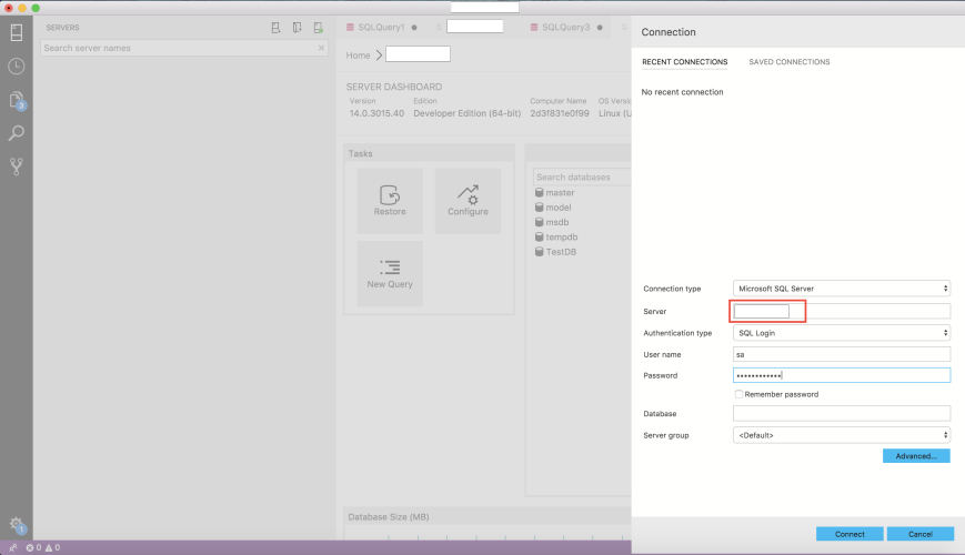 Tip 2 : How to connect to the SQL instance running on a container via SQL Operations Studio?