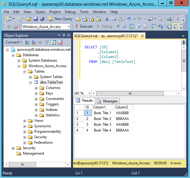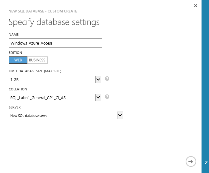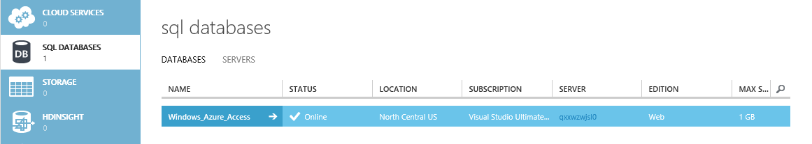 1) I need to create a Windows Azure SQL Database, let's just name is Windows_Azure_Access: