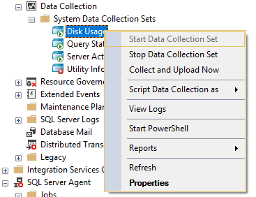 Now that you are you collecting data you can see what’s being collected easy in Reports. To get to these reports you Right click on Data Collection. Not the System Data Collection Set.