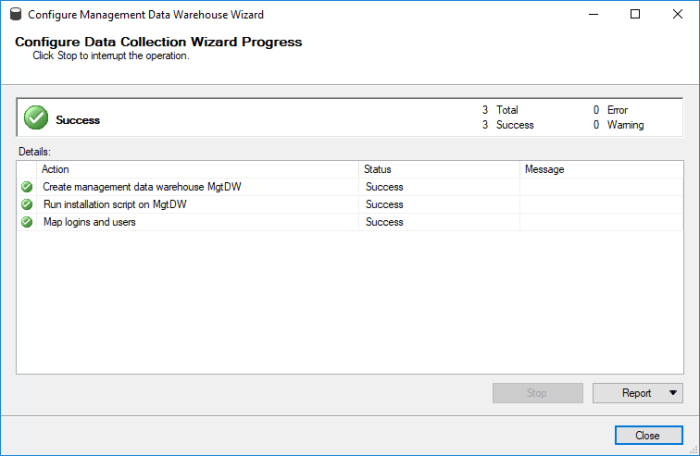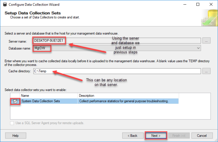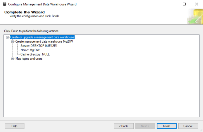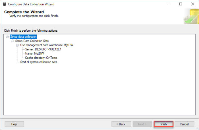 First steps to setting this up is to create a Management Data Warehouse to store the information in a collection. You can accomplish this by using a very simple wizard.