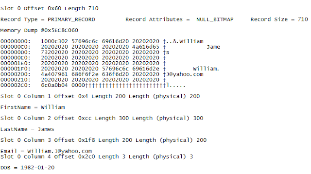 Now to see the row data stored in that page , we have to use the DBCC PAGE command. The syntax of DBCC PAGE :