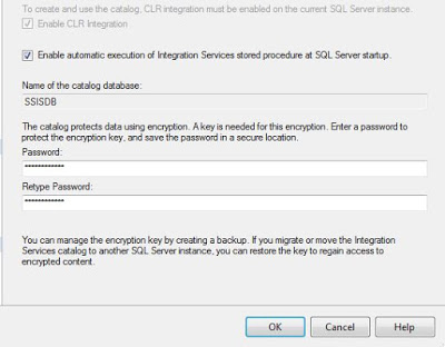 Open the SQL Server Management Studio, and then locate the Integration Services Catalogs folder, and then right click in the folder, and select the Create Catalog option.
