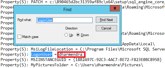 - Open the file and search for the keyword “LogonUser”. It will tell you show has installed the SQL Server