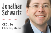 This interview with Mr. Schwartz is interesting and shows that he's not holding to the old model of Sun hardware and an expensive Solaris operating system being sold to large companies. Instead he's trying to build the company in new ways, with new ideas. He seems to be also from a different mold than most CEOs. He credits Scott McNealy in many ways and lists the employees of Sun as the "faces" of the company.