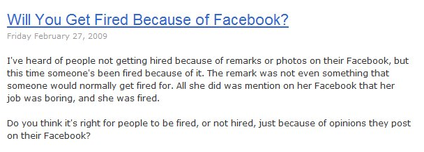 When I first saw this story, I was a bit disturbed. In an interview, for a statistician, the candidate was asked for his Facebook username and password. The interviewer wanted to view non-public parts of the candidate's profile on Facebook, and the candidate refused and withdrew his job application. I've heard of this in the past, with the city of Bozeman asking for credentials, but it appears the practice is growing. College athletes are asked to "friend" coaching staff, and some public sector workers must connect with their superiors.