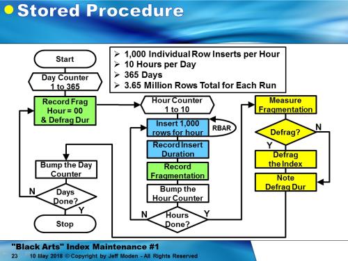 p.s. This work also proves that NOT defragging isn’t the way to go for everything, especially when page densities get down below 70% on 5GB indexes like the one immediately above. It does show, however, that the people touting the fully “No Defrag” methods (I'm only partially there now because there are places where it has merit) are right about one thing for sure…index maintenance can be a pretty bad waste of time if you don’t design your indexes correctly or can’t avoid “ExpAnsive” updates. If such things can’t be avoided, I just do a Rebuild when the page density gets below my threshold of pain. I use a“numbering trick” with the Fill Factor to identify such indexes so that I don’t actually have to keep track of them and other more well behaved indexes in a separate table. For “auto-classification”of indexes, I may end up having to do that, though. Still working on that.