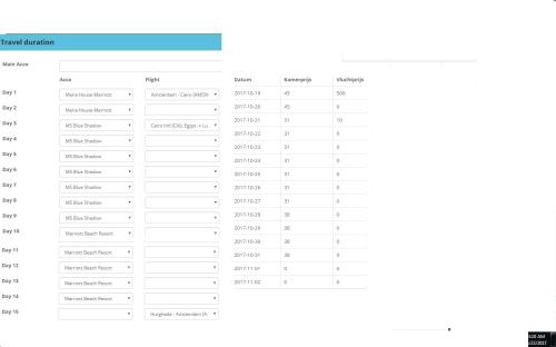 How to get cost per hotel and flight then add it in duration cost table based on flight date