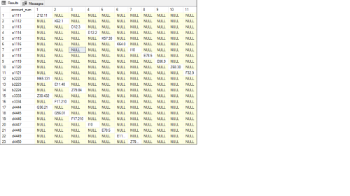 NineIron - Monday, February 5, 2018 4:00 AMJeff Moden - Sunday, February 4, 2018 3:41 PMNineIron - Friday, February 2, 2018 8:38 AMI've tried to understand dynamic sql but, to no avail. Could you tell me how to write the code that will pivot the diagnoses and use the DiagnosisUrnID as column headings. Maybe Diag1, Diag2, Diag3........