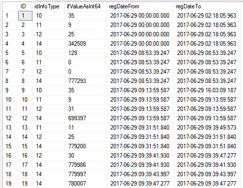 infoType:10 - ifValueAsInt64: 40 - dateRanges between 2016-01 and 2018-01