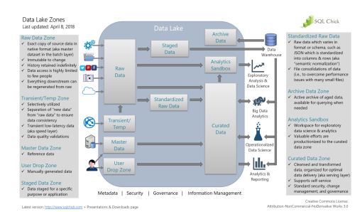 kinzleb - Tuesday, February 26, 2019 8:03 AMI subscribe to the idea of using zones in a data lake, and having a "raw zone" that is immutable. The data in other zones should be replaceable by rerunning a repeatable process that "selects" data form the immutable raw zone and places/replaces it in the downstream zone. Melissa Coates has a great diagram showing a data lake with different zones for a visual: https://www.sqlchick.com/entries/2017/12/30/zones-in-a-data-lake