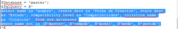 3. Insert the SQL code in this script with the query you want to check