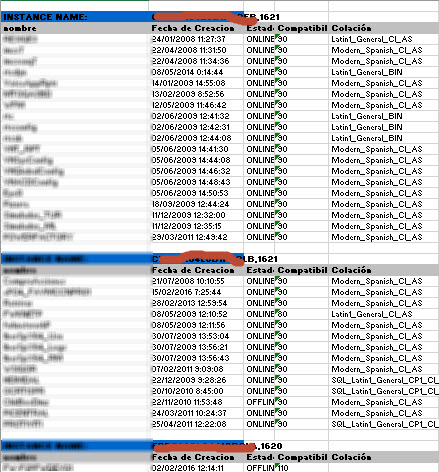 5. You will have an excel file with your query result per instance as this: