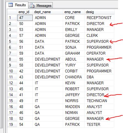 Arrows are showing top ranked employee for each department, and this is our requirement, we need to get top most ranked employee for each department.