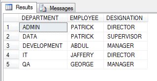 - Second is outer part, which is refining inner data, and returning only top ranked (or SRLNO =1) for each department.