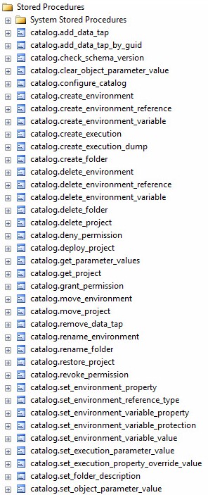 Please note: I am not dissecting what the SSIS Catalog does with these parameters or their values. I maintain I don’t need to know the internals of the SSIS Catalog to create a “wrapper stored procedure,” I merely need to know which stored procedures are called and the order in which they are called.