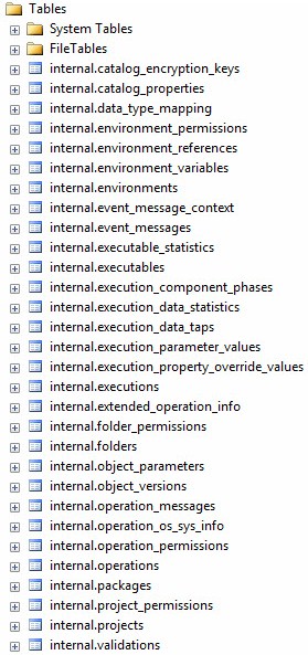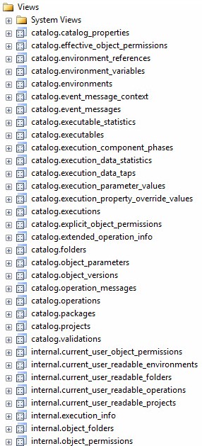 When you strip away the mystique, the SSIS Catalog is an application and a database. The application was developed by Microsoft and is integrated into SQL Server Management Studio (SSMS), but it’s still really just an application and a database – just like the applications and databases you support and develop every day. I briefly described the SSISDB database in Deployment and Execution – Step 18 of the Stairway to Integration Services. I repeat some screenshots below.