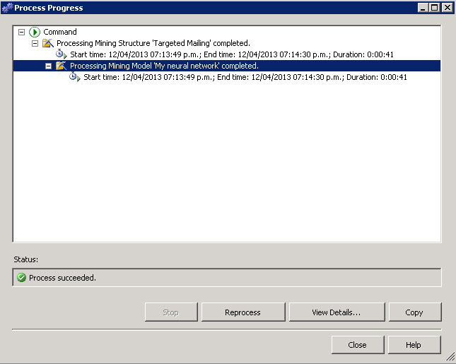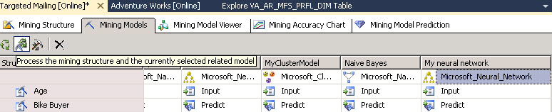 - In the Mining Model tab click the Process the mining structure icon.