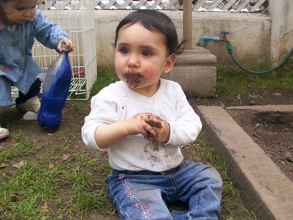 The output is the result of the experience: if the baby likes the dirt or not. He will experience with his mouth the taste of the food, and he will determine what is the best for himself.