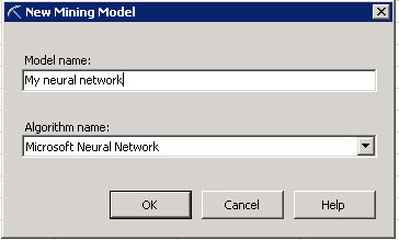 - Write any name for the Model Name textbox and choose the Microsoft Neural Network as the algorithm name.