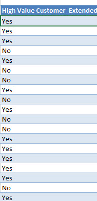 If you return to the Fill from Example Spreadsheet, you will notice that a new column is created labeled High Value Customer_Extended. And now the information