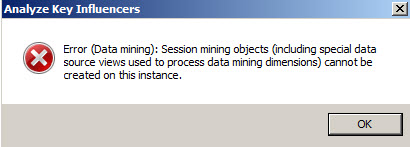 It is a problem related to the Data Mining Session objects that cannot be created on the instance.