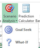 The first option is the Goal Seek. With this option, we analyze the values to meet a goal. For example if we have a customer who is not a potential customer, the option finds what of the characteristics should change to be a customer.