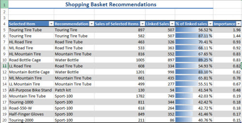 4. As you can see, the Touring Tire Tube is related to the Touring Tire. The HL Road Tire with the Road Tire Tube. The report show the relationship between products with a simple click.
