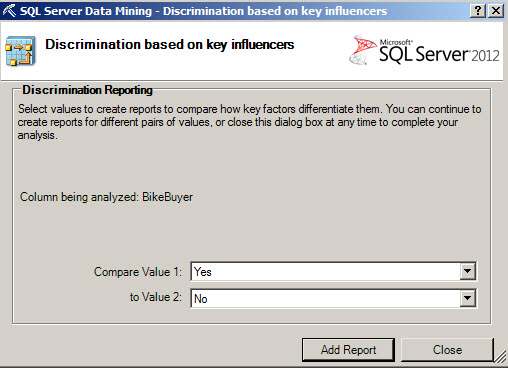 8. Once solved repeat the steps 1-3 and in the Discrimination based on key influencers, press Add Report.