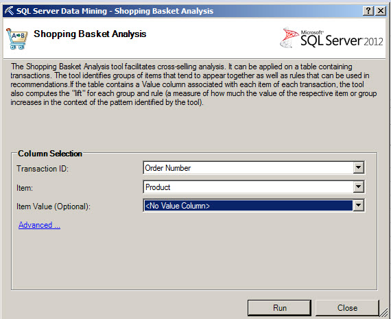 3. Select the Order Number as the Transaction ID and in the Item select product and then press run.