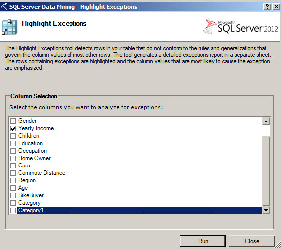 2. Select the column to analyze. In this sample, we will analyze if there are values in the Yearly incomes of the customers and press run.