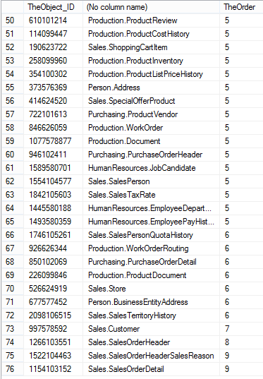 SELECT TheObject_ID, TheSchema+'.'+TheName, TheOrder