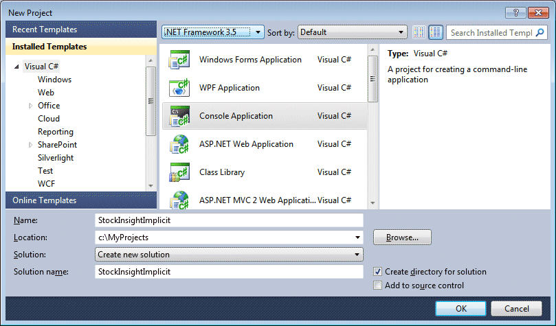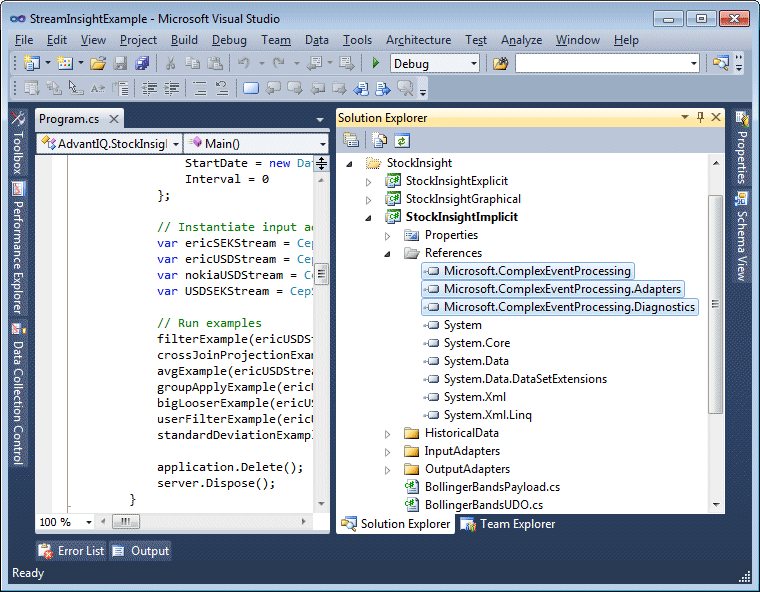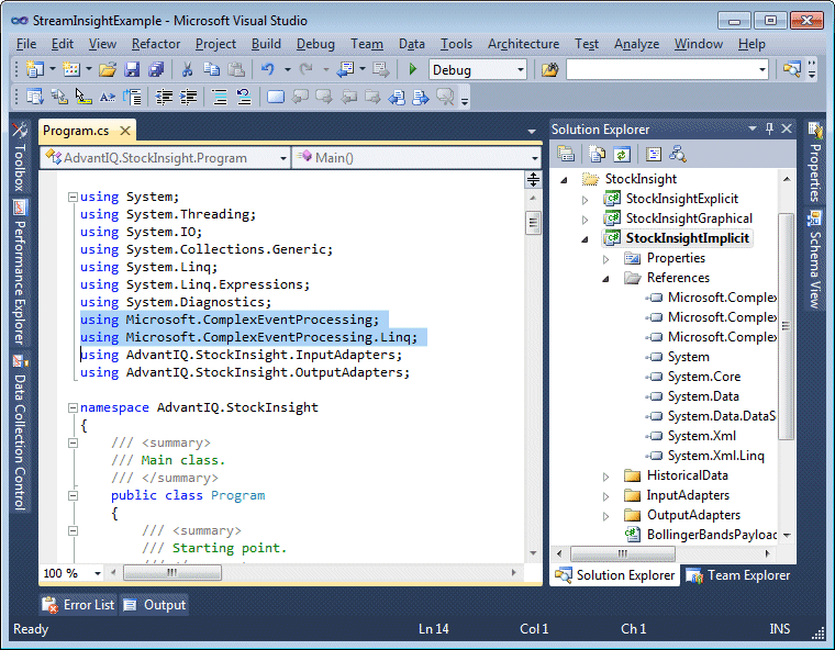 Note that there I have published also other samples. Download and open the whole solution in Visual Studio. The source code for this article is located in the project StockInsightImplicit.