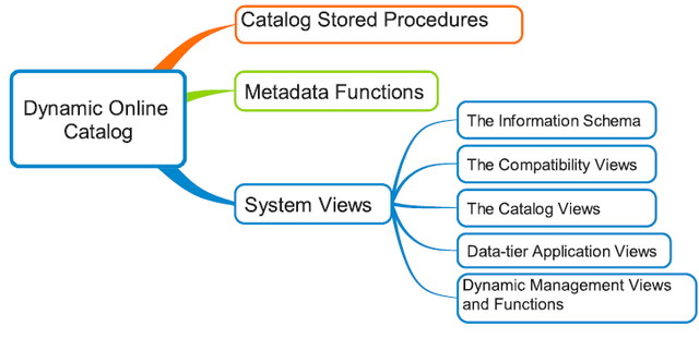 Catalog views provide us with information about the structure of a database. They are also used by the SQL Server Database Engine itself, particularly in the query optimiser, so are designed to be the most efficient way of getting information about the metadata. All metadata is exposed through these catalog views except for replication, backup, database maintenance plan, or for SQL Server Agent catalog data.