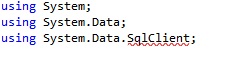 I downloaded and installed the free SQL Server Express Edition and Microsoft Visual Studio Community Edition. However, when I looked at the code in Visual Studio I got the dreaded red squiggly line on the SqlClient namespace: