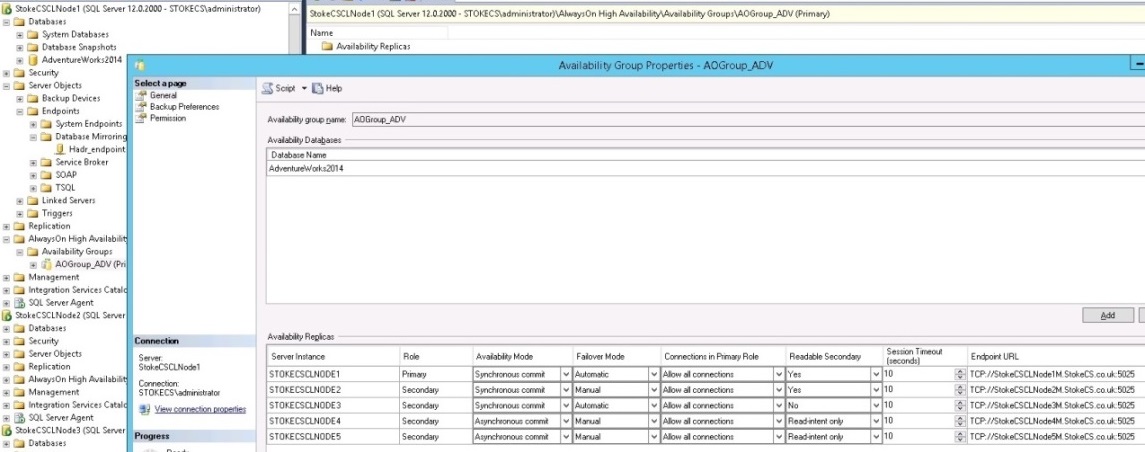 ROLE=ALL);Create the endpoints on each replica and ensure they're started. When using the Availability Group deployment wizard, you will be required to provide details of any replicas you wish to join to the group. Once the group has been created, it's time to review our deployed configuration. Below are the replica details I have used.
