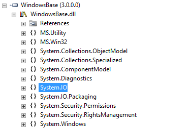 Figure 6 – Some of the namespaces that are included in the WindowsBase.dll file